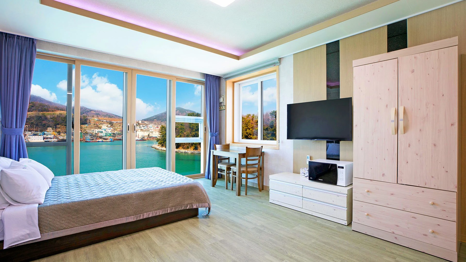 - 집기품목 : TV, 금연, 냉장고, 드라이기, 린스, 바디워시, 샴푸, 에어컨, 인덕션, 전자레인지, 침대방, 커피포트, 타월, VOD, 욕실용품, 바다전망